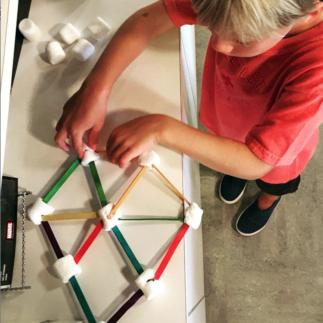 Children in the local school districts create marshmallow structures to explore the elements of engineering.